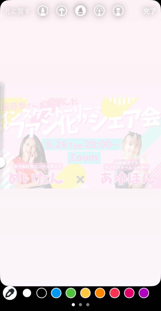 こちらのやり方は、遠藤歩さんにお世話になっていた時期に、デザインチームの方に教えていただいたストーリーのテクニックで、何か1枚の写真だけでも1枚は普通にアップ、2枚目は半透明にする!など色々な使い方ができます。